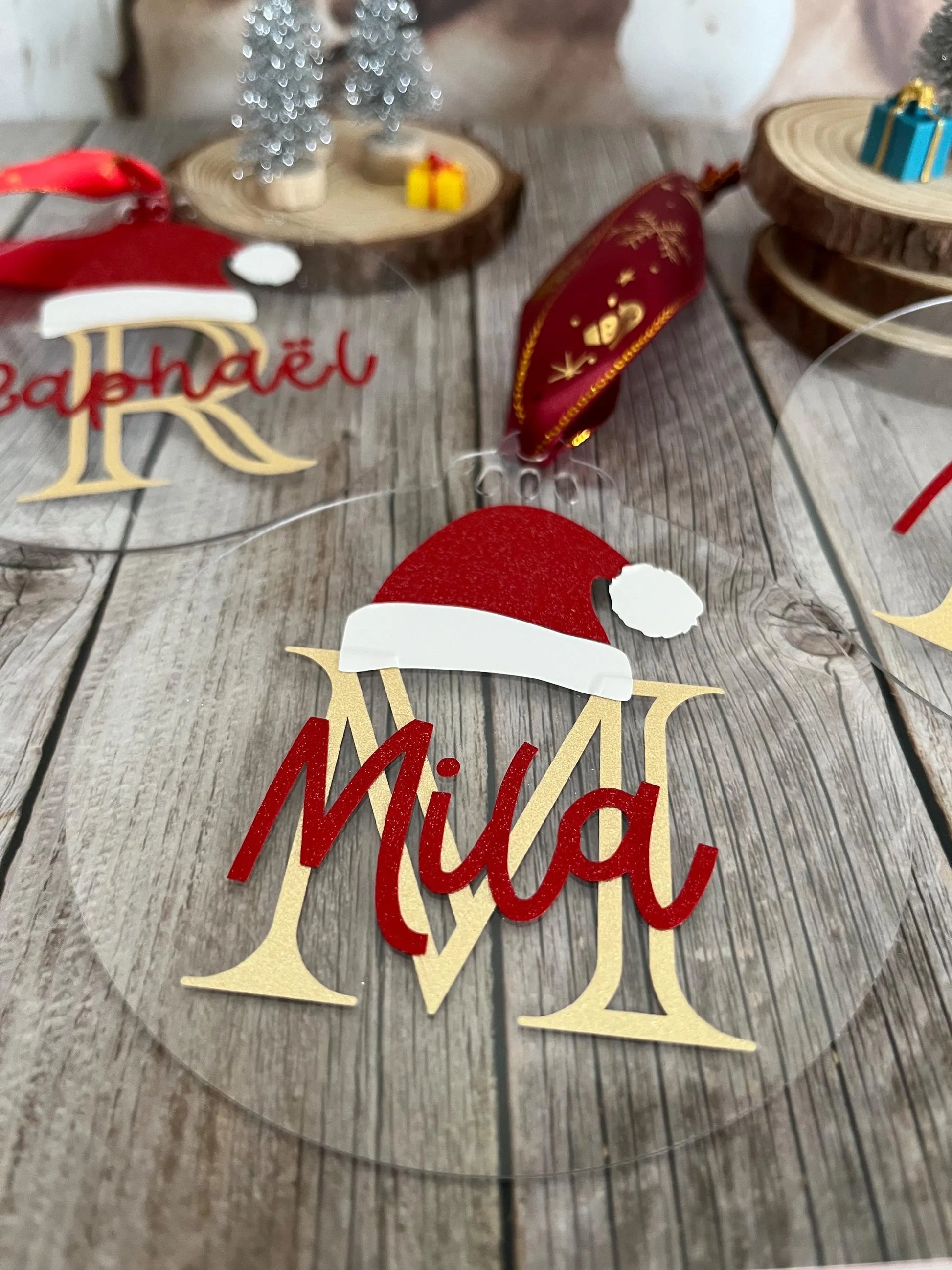 Boule de Noël / Marque place en plexiglass personnalisé(e)