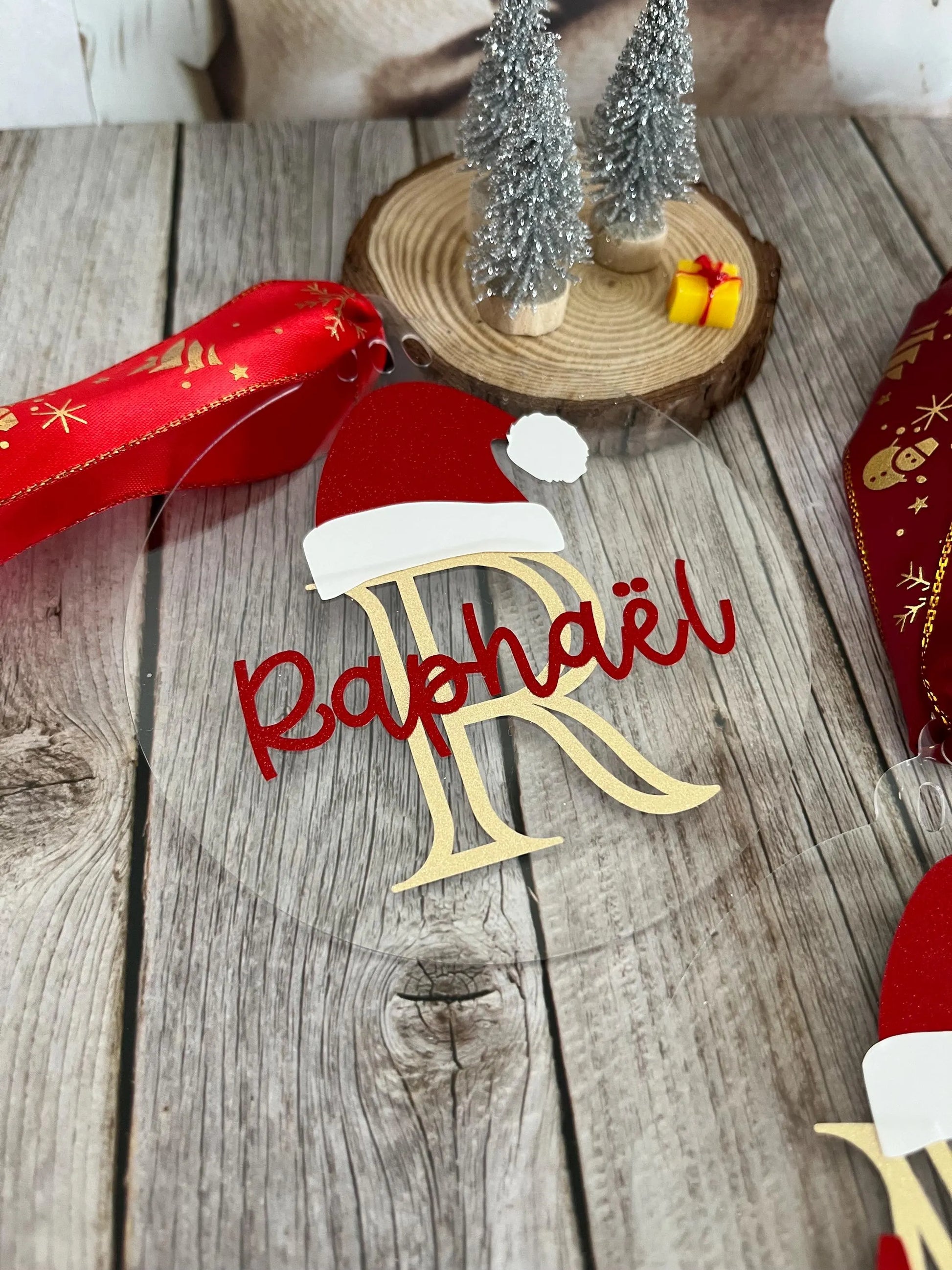 Boule de Noël en plexiglass personnalisée avec prénom